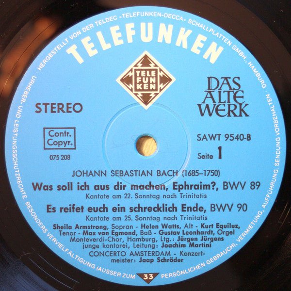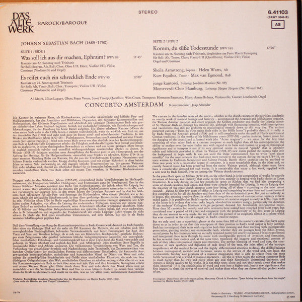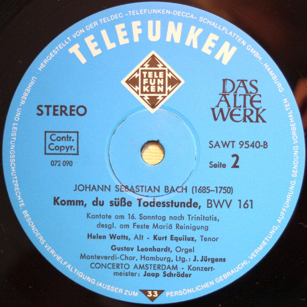 Johann Sebastian Bach, Concerto Amsterdam, Jaap Schröder - Kantaten・Cantatas (LP)