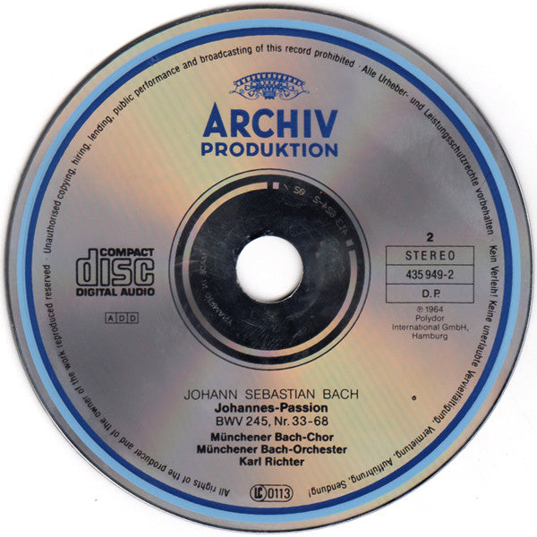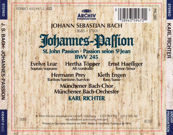 Johann Sebastian Bach, Evelyn Lear, Hertha Töpper, Ernst Haefliger, Hermann Prey, Kieth Engen, Münchener Bach-Chor, Münchener Bach-Orchester, Karl Richter - Johannes-Passion (2xCD, RE, RM)
