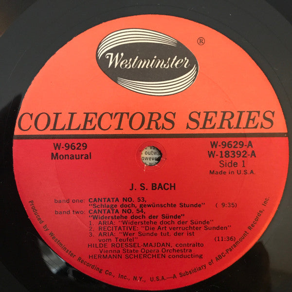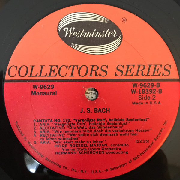 Johann Sebastian Bach, Hilde Rössel-Majdan, Orchester Der Wiener Staatsoper, Hermann Scherchen - Three Cantatas For Contralto (LP, Mono)