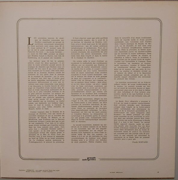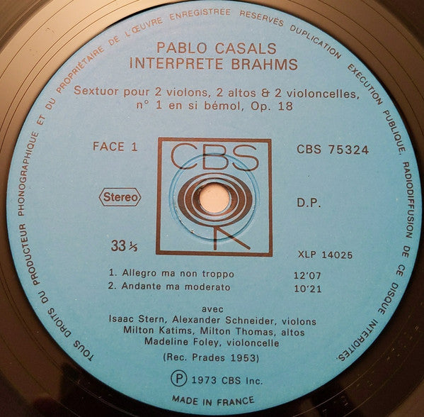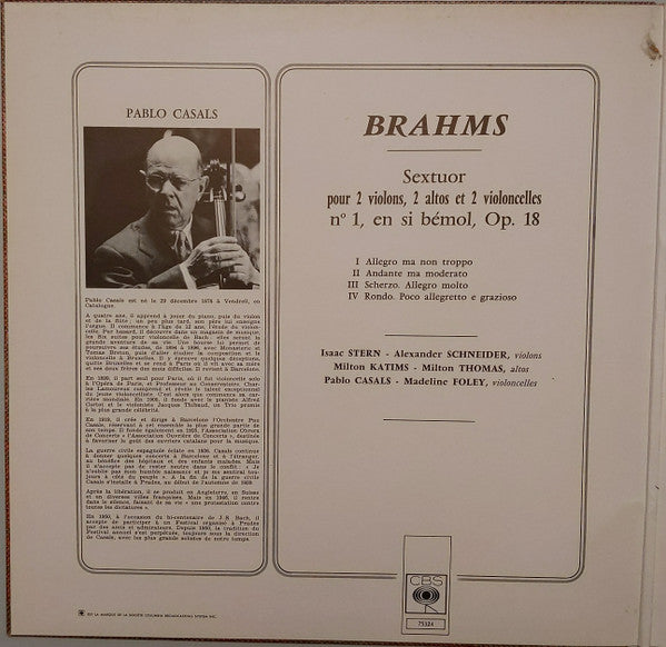 Johannes Brahms, Isaac Stern, Alexander Schneider, Milton Katims, Milton Thomas, Pablo Casals, Madeline Foley - Sextuor N° 1 (LP, Album)