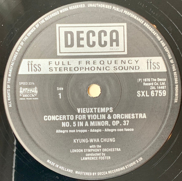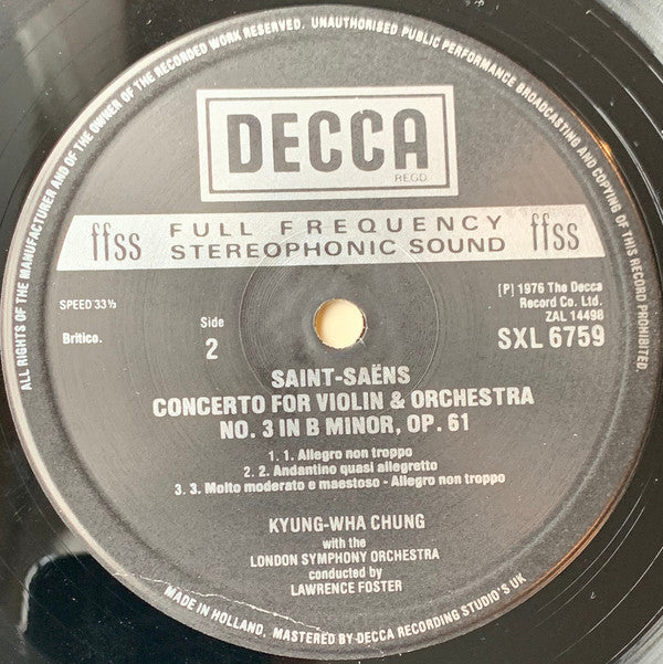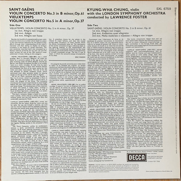 Kyung-Wha Chung, Camille Saint-Saëns, Henri Vieuxtemps, London Symphony Orchestra, Lawrence Foster - Saint-Saëns Violin Concerto No.3, Vieuxtemps Violin Concerto No.5 (LP, Album)
