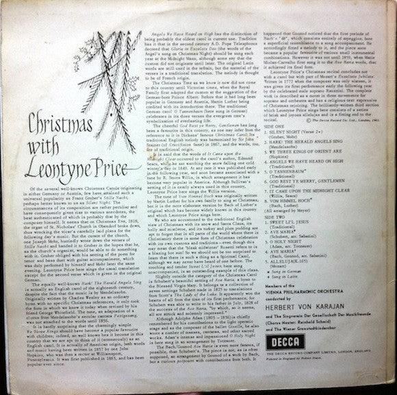 Leontyne Price, Herbert von Karajan, Wiener Philharmoniker - Christmas With Leontyne Price (LP, Album, Mono)