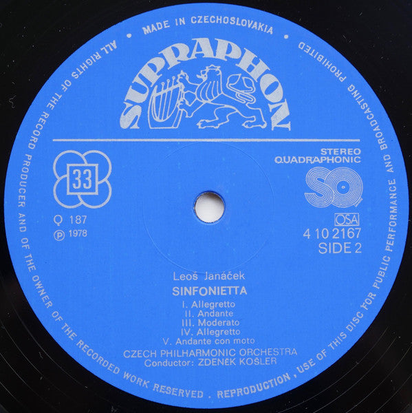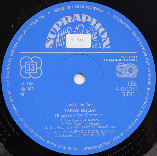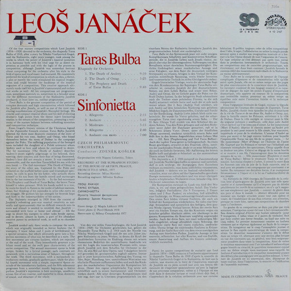 Leoš Janáček, The Czech Philharmonic Orchestra, Zdeněk Košler - Taras Bulba / Sinfonietta (LP, Album, Quad)