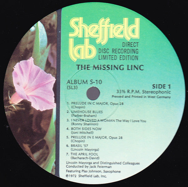 2nd pressing on the "Sheffield Lab" imprint. Flower labels. Pressed and printed In Germany Recorded from the studio directly to the master disc. Recorded at the Producer's Workshop and The Mastering Lab, LA