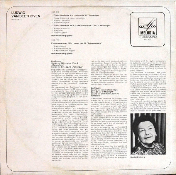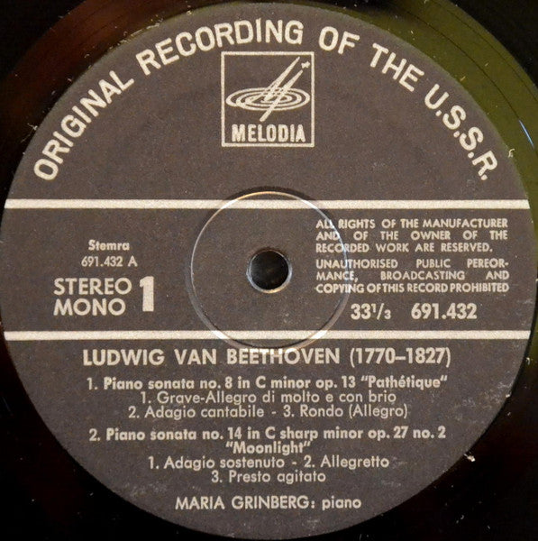 Ludwig van Beethoven, Maria Grinberg - Pathétique, Moonlight, Appassionata (LP)