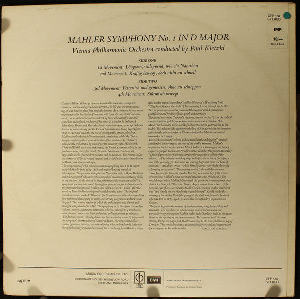 Gustav Mahler, Paul Kletzki, Wiener Philharmoniker - Symphony No.1 (LP, Album)