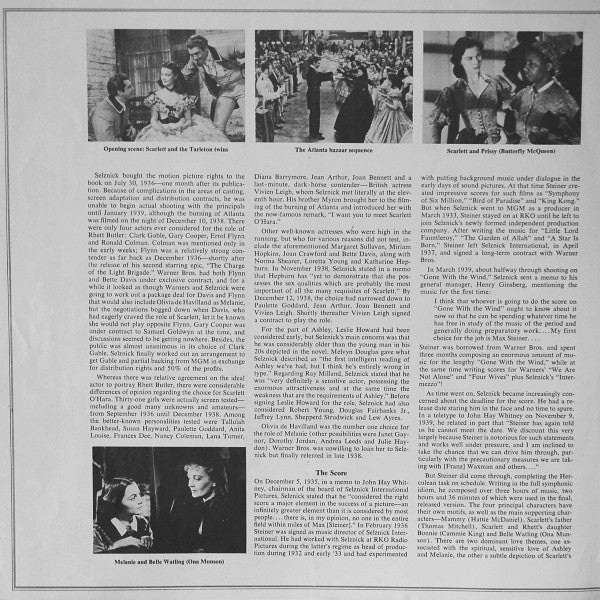 'Excerpts from David O. Selznick's correspondence and music files by kind permission of Selznick Properties Ltd, and Daniel Selznick. Photos courtesy of Metro-Goldwyn-Mayer, Inc c 1939 c renewed 1967'.