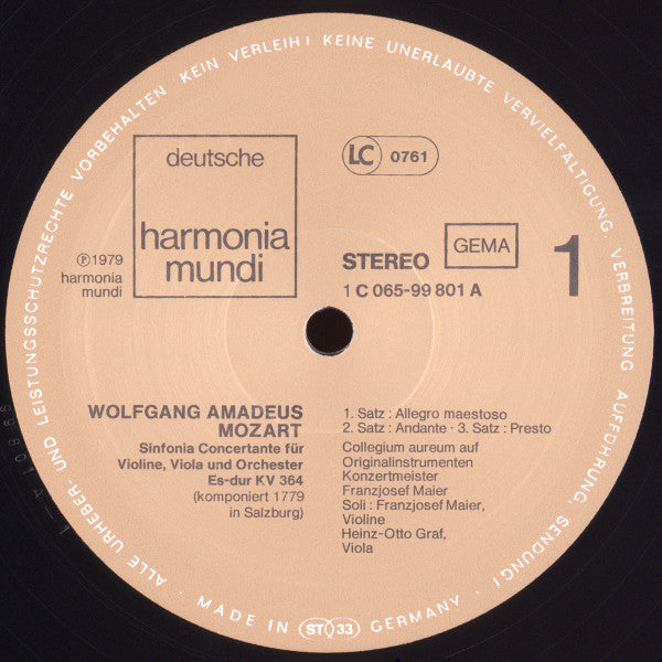 Wolfgang Amadeus Mozart – Collegium Aureum, Franzjosef Maier - Konzertante Sinfonien KV364 und KV297b (LP)