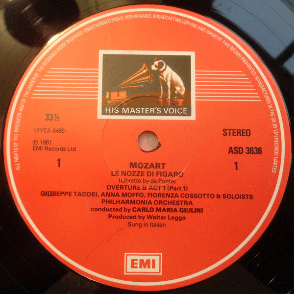 Wolfgang Amadeus Mozart - Eberhard Wächter, Elisabeth Schwarzkopf, Fiorenza Cossotto, Giuseppe Taddei, Anna Moffo, Philharmonia Orchestra And Philharmonia Chorus, Carlo Maria Giulini