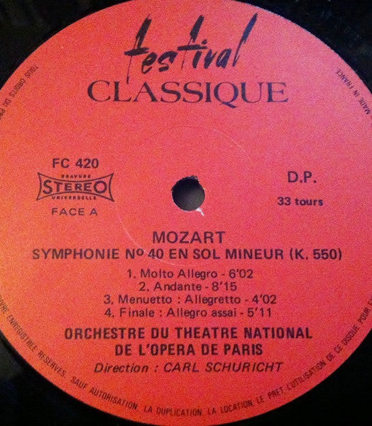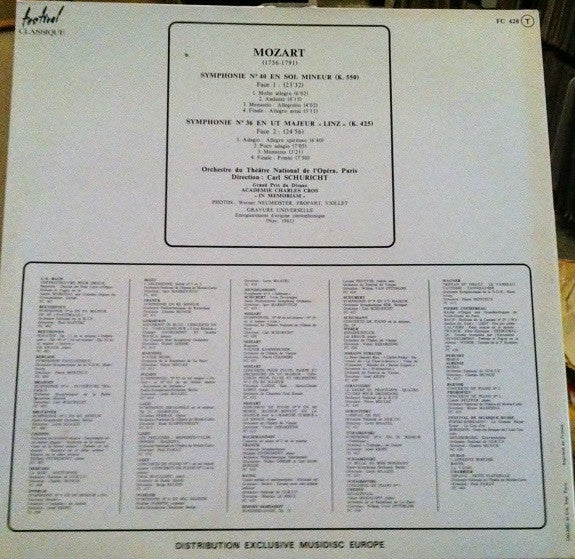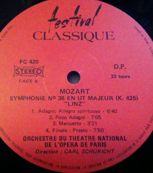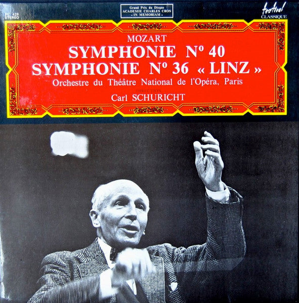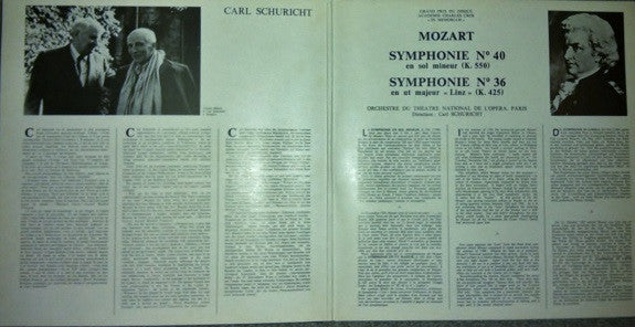 Wolfgang Amadeus Mozart, Orchestre National De L'Opéra De Paris Direction Carl Schuricht - Symphonie N° 40 / Symphonie N° 36 "Linz" (LP, Album)