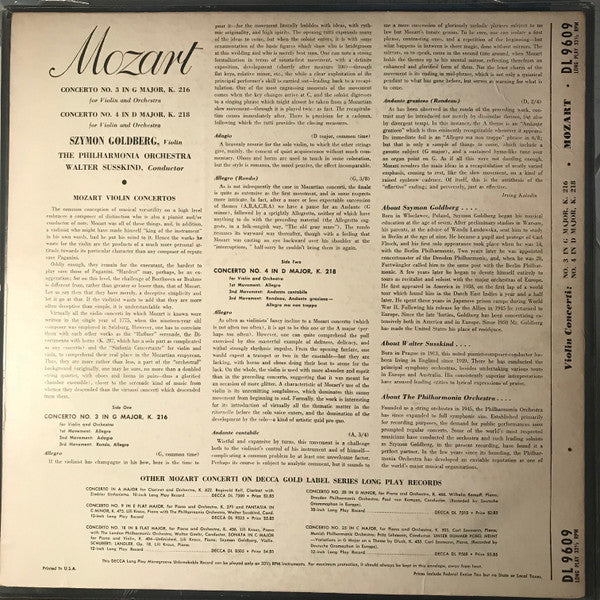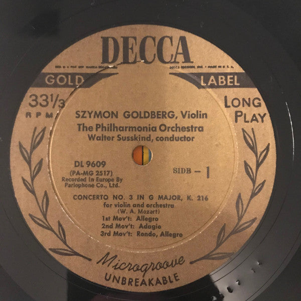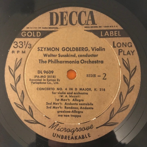 Wolfgang Amadeus Mozart, Szymon Goldberg, Philharmonia Orchestra, Walter Susskind - Concerto No. 3 In G Major, K.216 / Concerto No. 4 In D Major, K.218 (LP, Album, Mono)