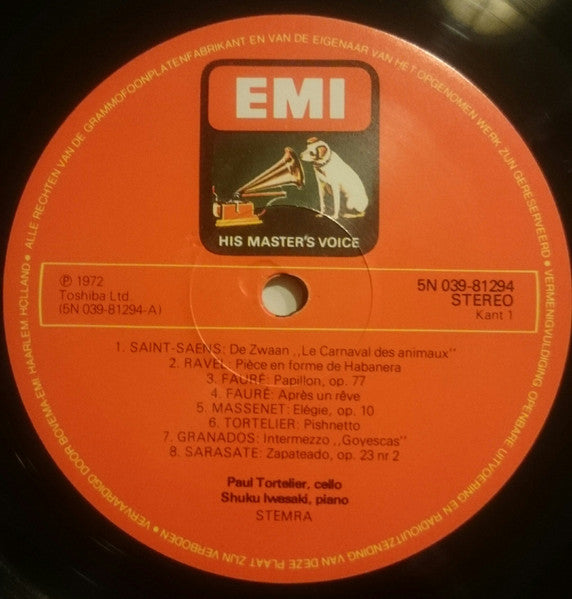 Paul Tortelier & Shuku Iwasaki - Cello & Piano (Saint-Saens: De Zwaan • Fauré: Papillon • Après Un Rêve • Sarasate: Zapateado • Paganini: Moto Perpetuo • Rossini-Variaties • E.v.a.) (LP, Album, RE)