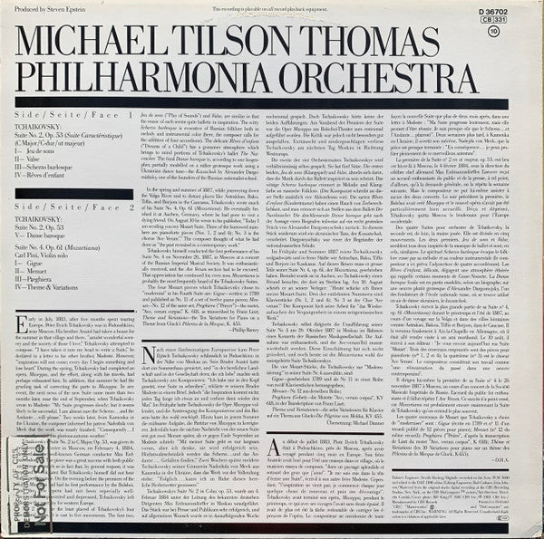 Pyotr Ilyich Tchaikovsky, Michael Tilson Thomas, Philharmonia Orchestra - Tchaikovsky: Suites Nos. 2 & 4 (LP)