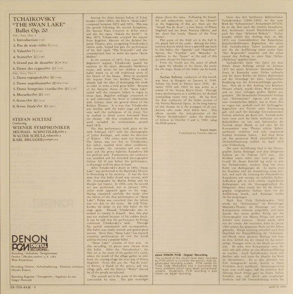Pyotr Ilyich Tchaikovsky, Stefan Soltesz, Wiener Symphoniker - The Swan Lake Op. 20 (LP)