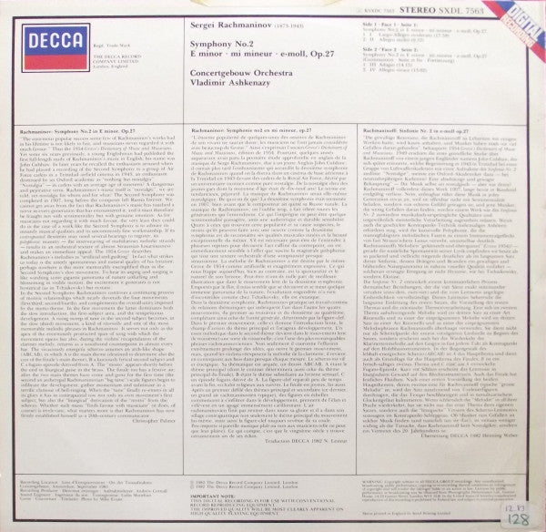 Sergei Vasilyevich Rachmaninoff, Concertgebouworkest / Vladimir Ashkenazy - Symphony No.2 (LP)