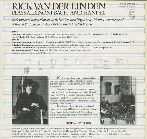 Rick Van Der Linden - Plays Albinoni, Bach And Handel (LP)