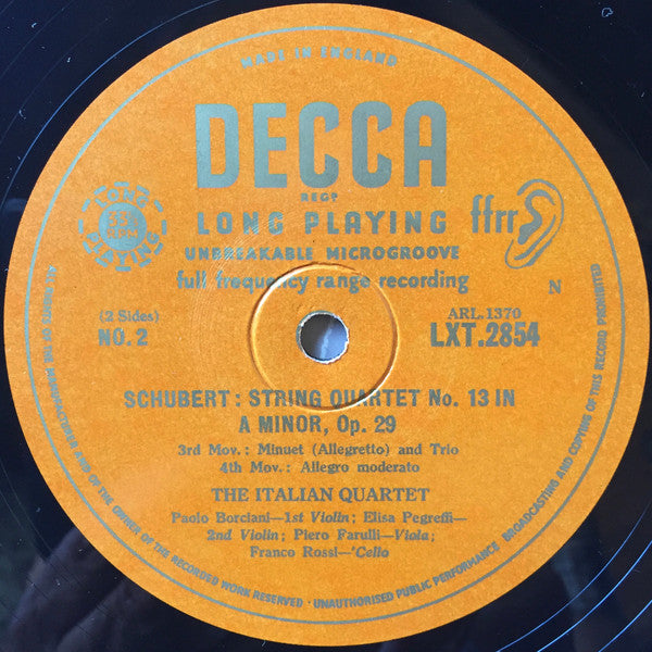 Franz Schubert, Quartetto Italiano - String Quartet No. 13 In A Minor Opus 29 (LP, Album)