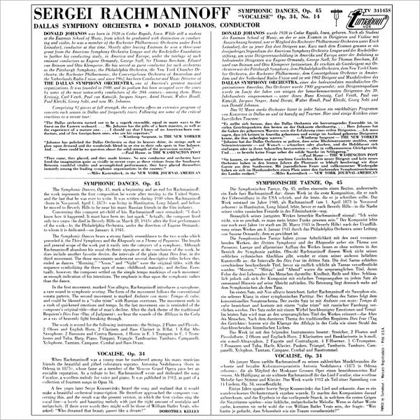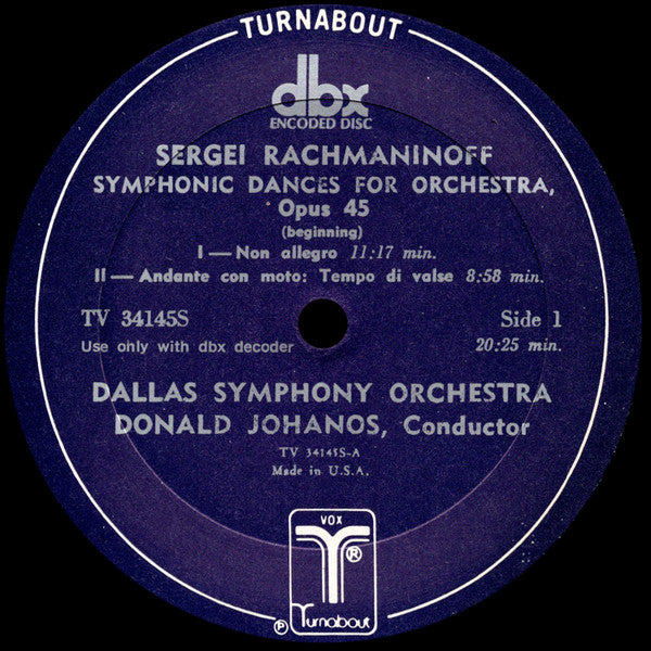 Sergei Vasilyevich Rachmaninoff, Dallas Symphony Orchestra, Donald Johanos - Symphonic Dances / Vocalise (LP, Comp, RE, DBX)