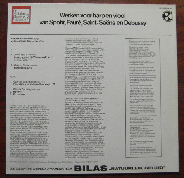 Susanna Mildonian, Jean-Jacques Kantorow, Louis Spohr, Gabriel Fauré, Camille Saint-Saëns, Claude Debussy - Werken voor harp en viool (LP, Album, Bil)