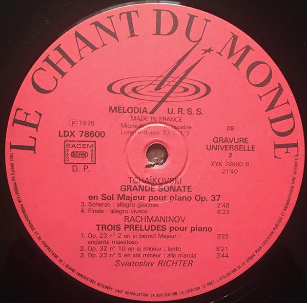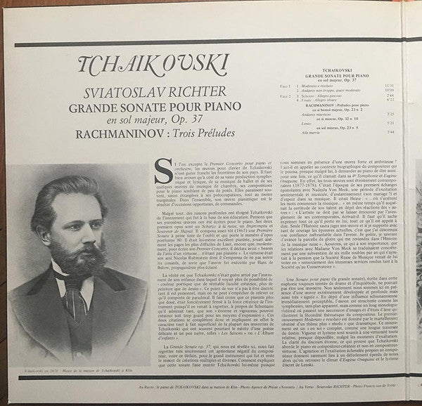 Pyotr Ilyich Tchaikovsky, Sergei Vasilyevich Rachmaninoff, Sviatoslav Richter - Grande Sonate Pour Piano / Trois Preludes (LP, Album, Gat)