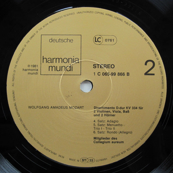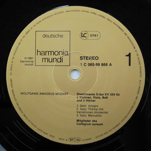 Wolfgang Amadeus Mozart, Collegium Aureum - Divertimento D-Dur KV 334 (LP, Album)
