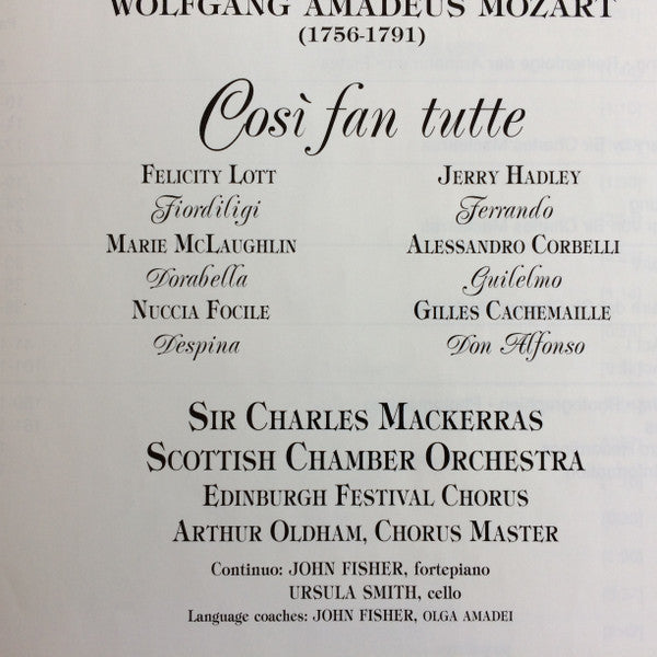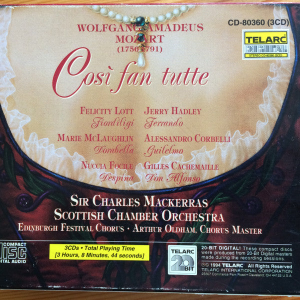 Wolfgang Amadeus Mozart, Felicity Lott, Jerry Hadley, Marie McLaughlin, Alessandro Corbelli, Nuccia Focile, Gilles Cachemaille, Sir Charles Mackerras, Scottish Chamber Orchestra, Edinburgh Festival Chorus - Così Fan Tutte (3xCD)