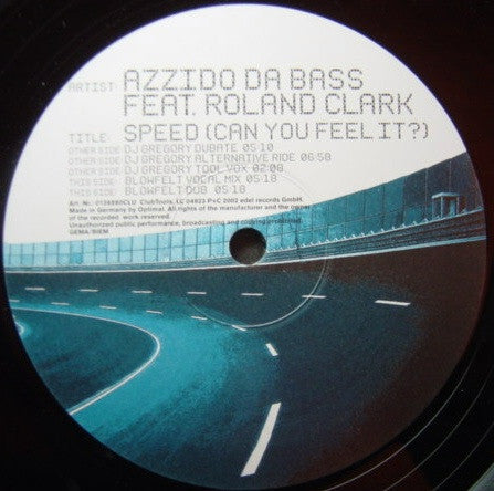 Azzido Da Bass - Speed (Can You Feel It?) Part 3 Of 3 (12")