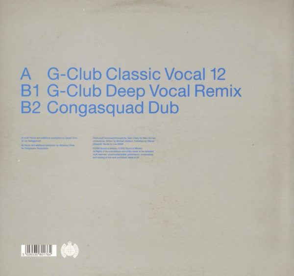 Samples Michael Jackson's "Don't Stop 'Till You Get Enough." Catalog number on inner label: MOS137 Catalog number on spine: MOS 137 ℗ 2000 Sound Of Ministry. © 2000 Sound Of Ministry. Made in UK Produced/composed/arranged by Sean Casey for Baby Bumps Productions. Track A1 & B1 remix and additional production by Gerald Elms for Up Management. Track B2 remix and additional production by Abbaloos Olivier for Holographic Productions.