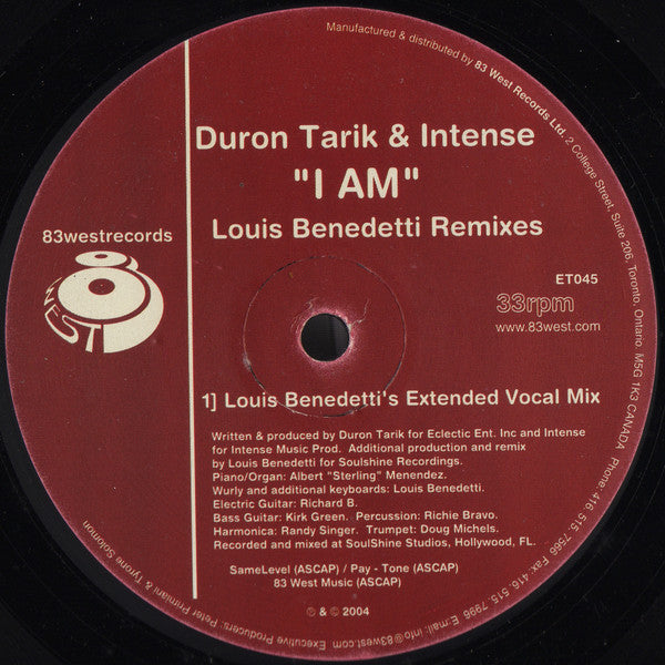 Duron Tarik & Intense - I Am (Louis Benedetti Remixes) (12")
