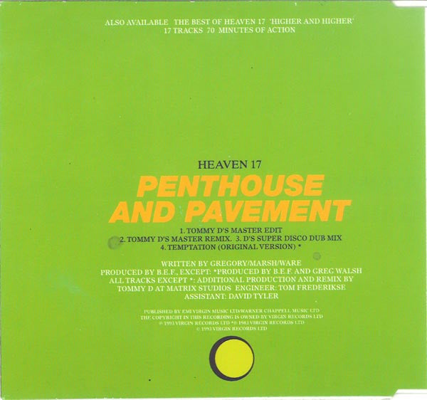 Heaven 17 - Penthouse And Pavement (The Tommy D Remixes) (CD, Maxi)