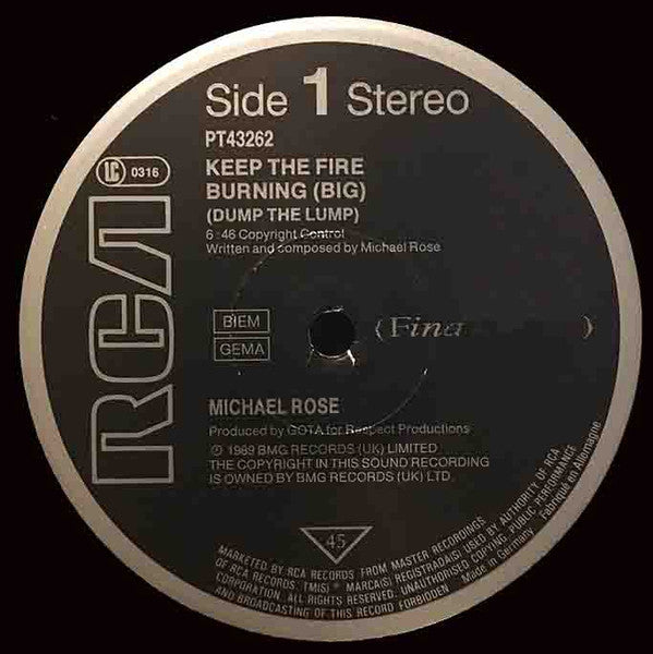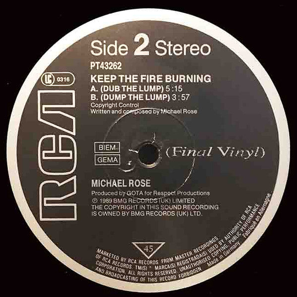 Michael Rose - Keep The Fire Burning (Dump The Lump) (12", Maxi)