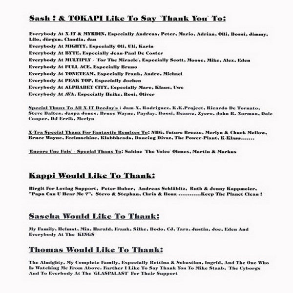 All tracks produced by Sash! & Tokapi at Peak Top Studios Düsseldorf
