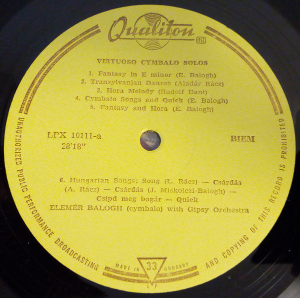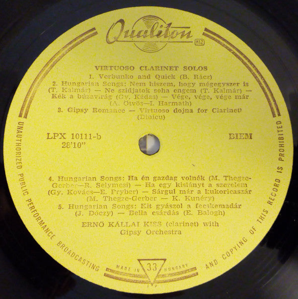 Elemér Balogh • Ernő Kállai Kiss - Virtuoso Cymbalo And Clarinet Solos (LP, Album, Mono)