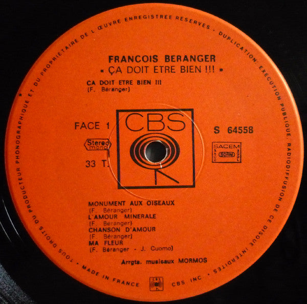 François Béranger & Mormos - "Ça Doit Être Bien..." (LP, Album, RP)