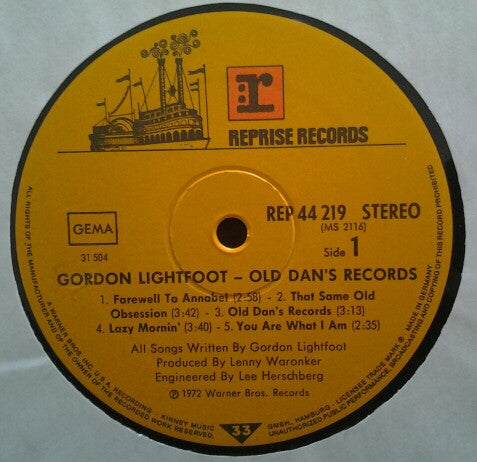 Gordon Lightfoot - Old Dan's Records (LP, Album)