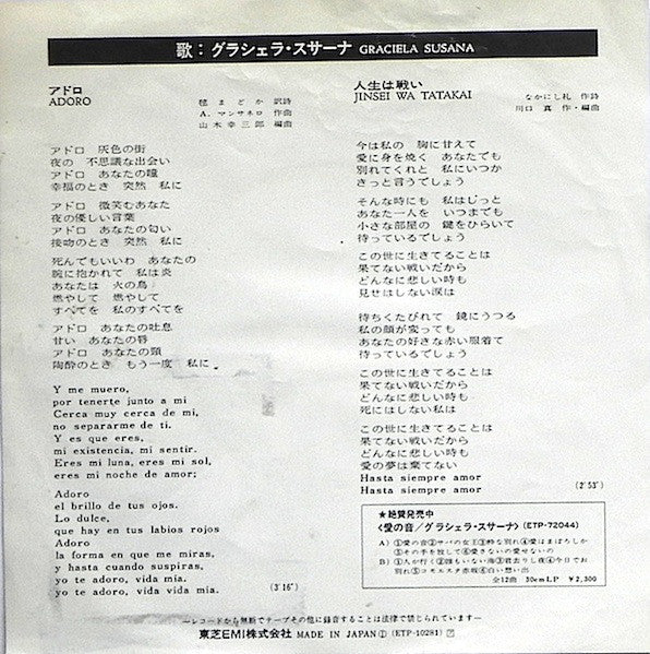 Graciela Susana - アドロ / 人生は戦い (7", RE)