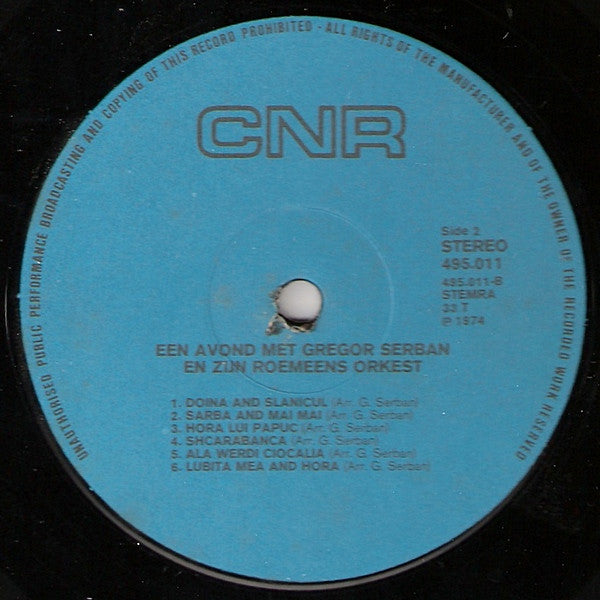 Een avond met Gregor Serban en zijn Roemeens orkest [An evening with Gregor Serban and his Romanian orchestra; on label side A: