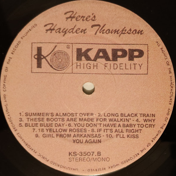 Hayden Thompson - Here's Haydon Thompson (LP, Comp, Unofficial)