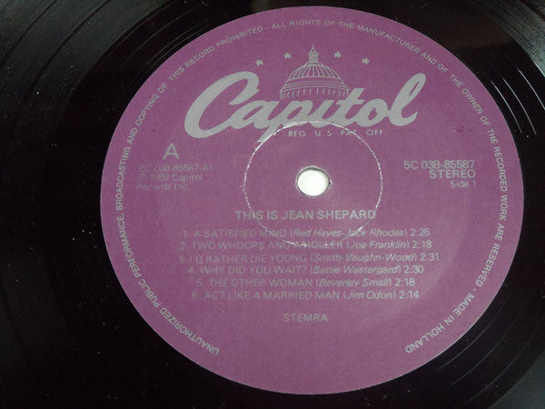 Jean Shepard - This Is Jean Shepard (LP, Album, RE)