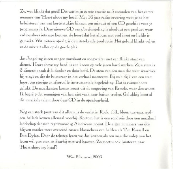 Jos Jongeling - Heart Above My Head (CD, Album)
