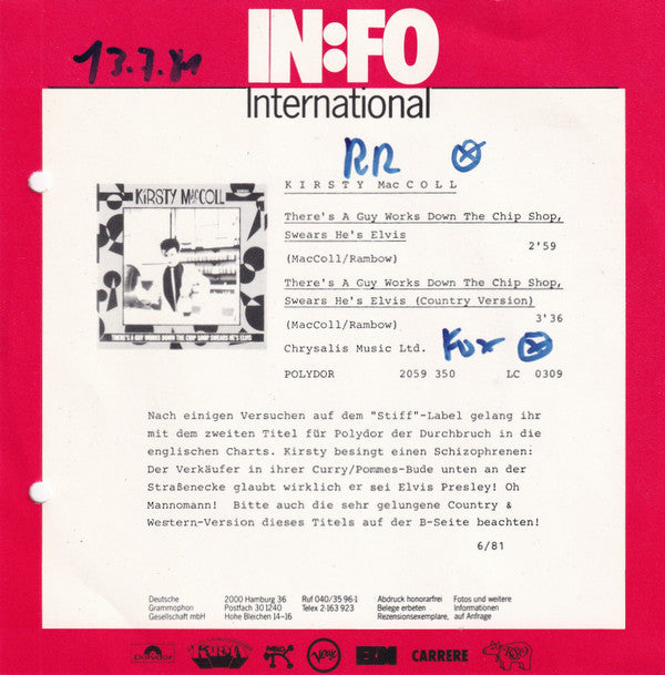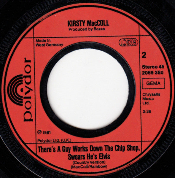 Kirsty MacColl - There's A Guy Works Down The Chip Shop Swears He's Elvis (7", Single)
