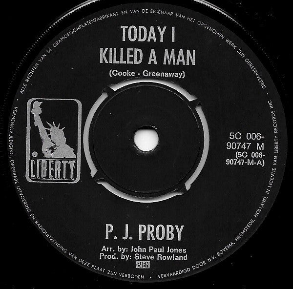 P.J. Proby - Today I Killed A Man / Three Week Hero (7", Single)