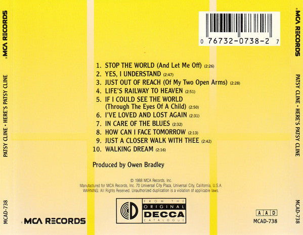 Patsy Cline - Here's Patsy Cline (CD, Comp, RE, RM)