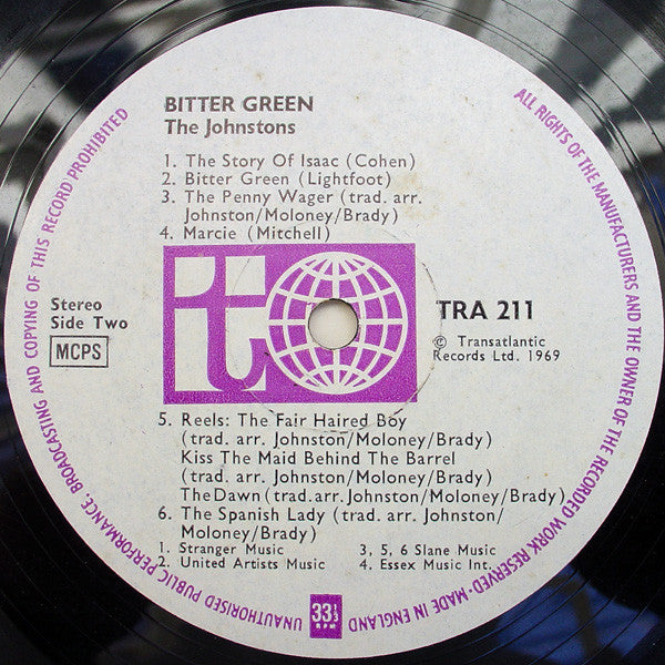 Artist as 'Johnstons' on front cover as a graphic. Displayed correctly as 'The Johnstons' on rear sleeve, spine of sleeve and record labels. ⓒ Transatlantic Records Ltd. 1969 Month of release from Record Collector Magazine August 1995 p.209