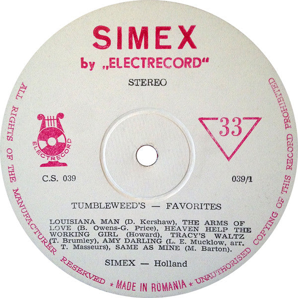 The sleeve has no printing credits but is not Romanian in origin (it is certainly not an Electrecord sleeve). Simex is probably the bands own label. The vinyl was manufactured in Romania for release in The Netherlands.