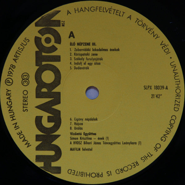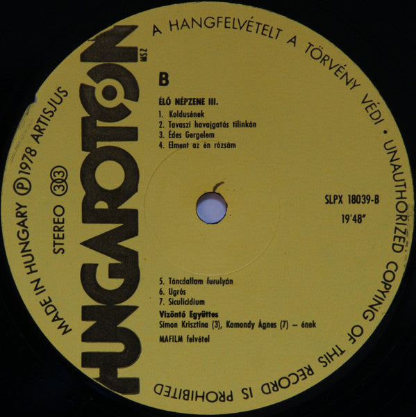 Vízöntő - Living Hungarian Folk Music 3 = Élő Népzene III. (LP, Album)