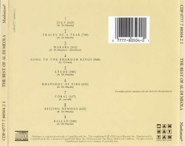Al Di Meola - The Best Of Al Di Meola: The Manhattan Years (CD, Comp, RP)