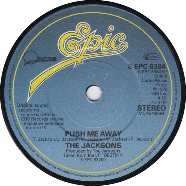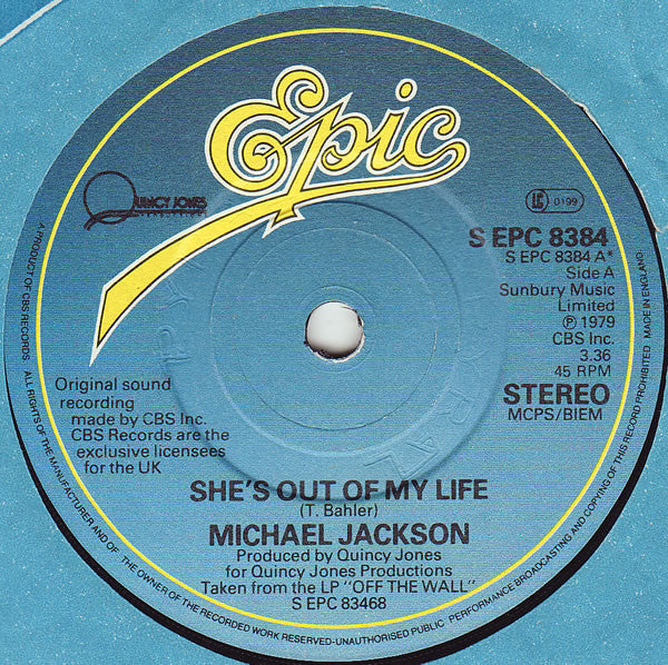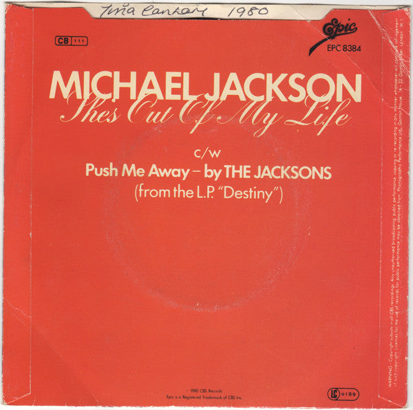 A Side: "She's Out Of My Life" Taken from the S EPC 83468 LP 435524. Produced for Quincy Jones Productions. B Side "Push Me Away" Taken From the S EPC 83200 LP 68497