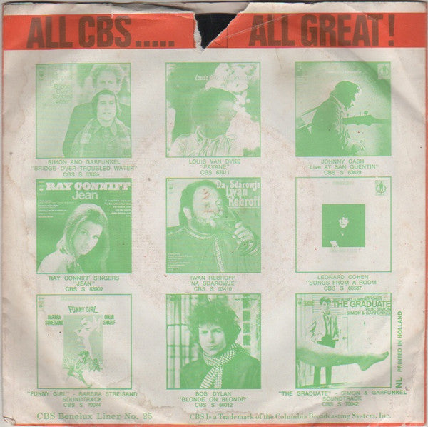 Ⓟ 1970 Made in Holland Side B: (From the Paramount Picture "Tell Me That You Love Me, Junie Moon") From the CBS Album S 64026 "[r=3623343" CBS Is a Trademark of the Columbia Broadcasting System, Inc. Printed in Holland