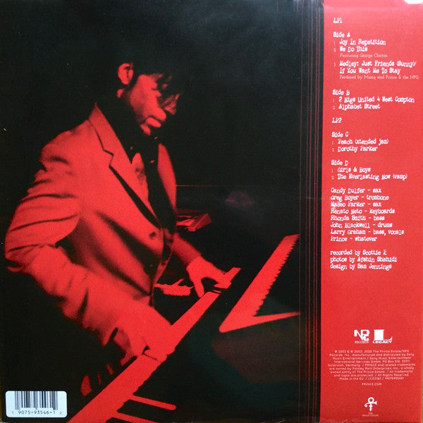 Hype sticker: First time on LP! Limited edition purple vinyl 2 x LP of live songs from Prince's legendary late night aftershow concerts from 2002 Gatefold cover: ℗ 2002 & © 2002, 2020 The Prince Estate/NPG Records, Inc. [... Made in the EU Tracks 1-3 recorded in New York City, April 9th Tracks 4, 5, 7-9 recorded in Los Angeles, CA, April 20th Track 6 recorded in Portland, OR, April 30th Recorded live [... direct 2 DAT We Are Vinyl sticker: claim your download at wearevinyl.com Remark: Originally released as CD3 in 2002 on 669370